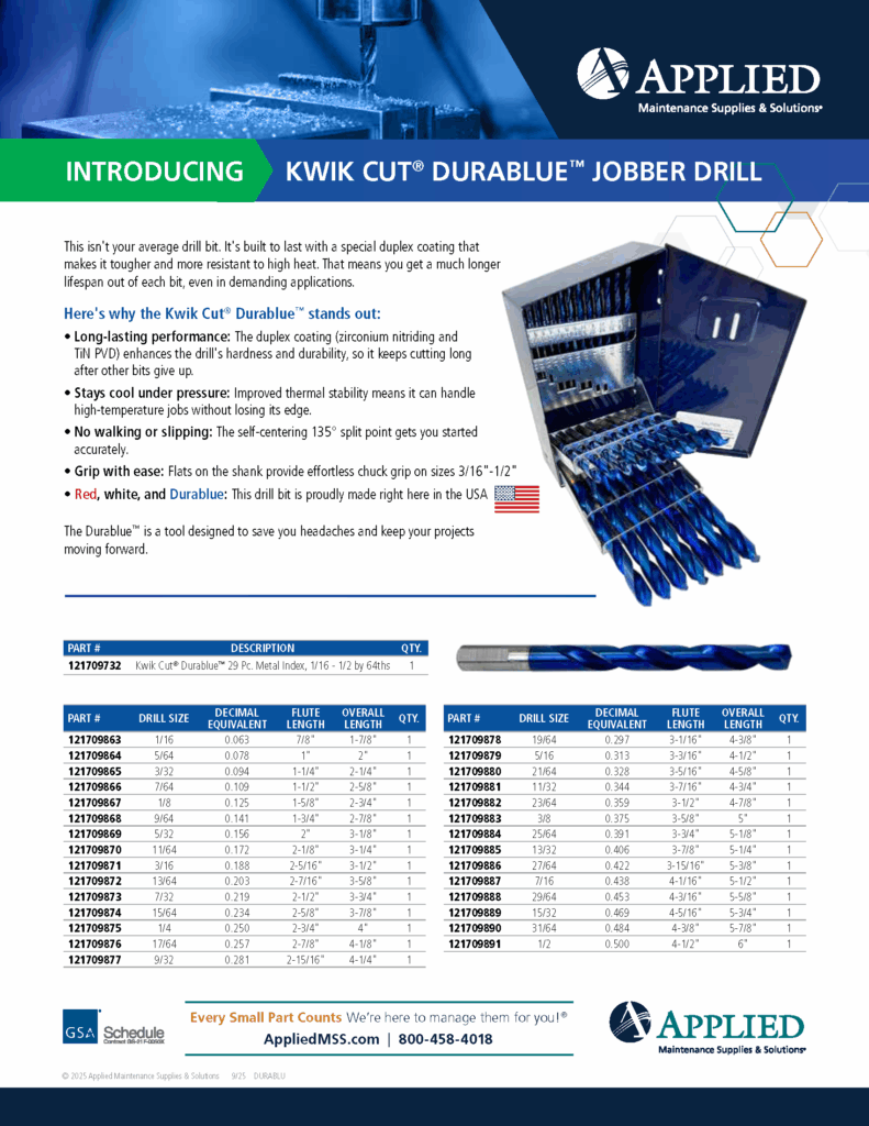 Since 1948, Applied Maintenance Supplies and Solutions helps folks in industrial workplaces get the parts they need when they need them. We pride ourselves on our vendor managed inventory solutions, ensuring that your workspace is stocked, organized, and optimized for your unique operation.